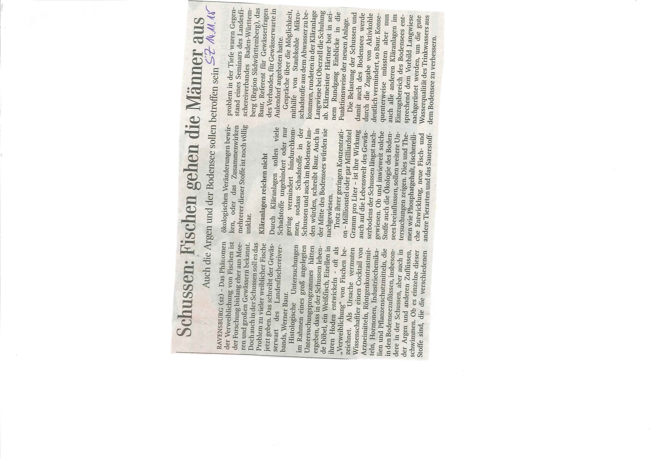 Schussen: Fischen gehen die Männer aus (Schwäbische Zeitung 14.11.2015)adminASV8. Februar 2016Pressebericht